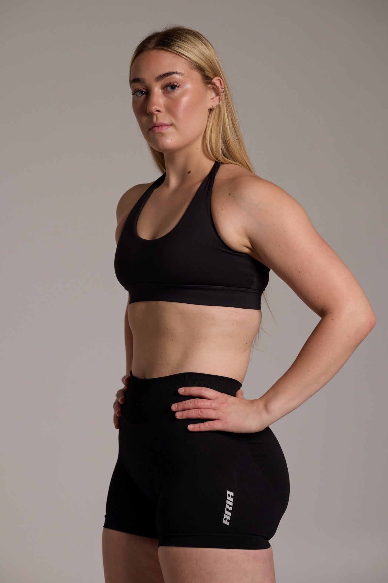 Aura Seamless Halter Bra - Onyx